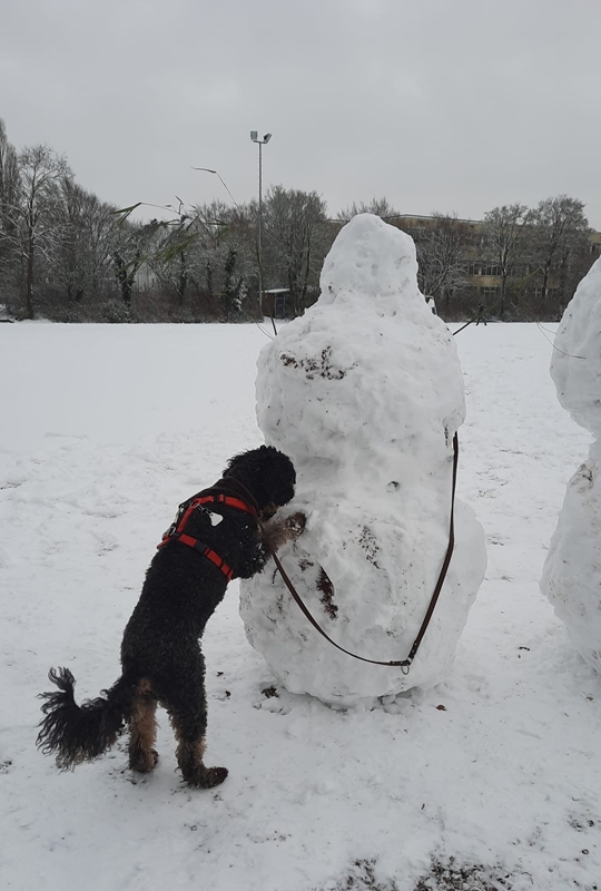 Djara hatte Spaß im Schnee und baut einen Schneemann
