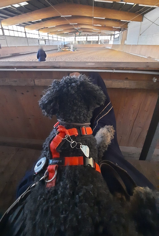 Aber sie hat auch gelernt, geduldig den Reitunterricht zu verfolgen.