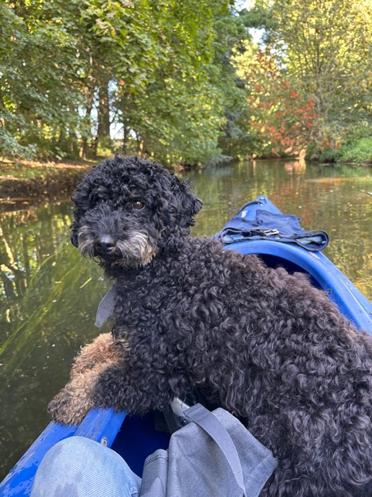 Curly- Sue war mit ihrer Familie paddeln. Sie arbeitet sehr gerne mit ihrer Nase.