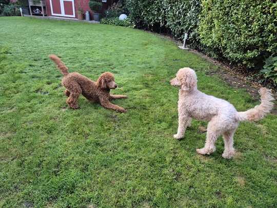 Die Leinenführigkeit ist noch ausbaufähig und unseren Rasen haben wir in diesem Jahr aufgegeben.