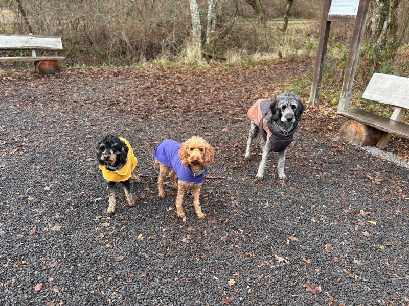 Hier ist alles wunderbar, außer dass es sehr kalt wurde, als ich die Rasselbande gerade geschoren hatte… da müssen gerade die Mäntel herhalten…