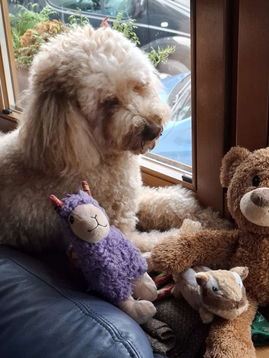 Hallo Tante Gabi vielen Dank für eure Glückwünsche. Der Tag ist heute mit einer Matschrunde und der Labbigang angefangen. Danach durften Oskar und ich ins bubblebad. Ich musste danach meinen wohlverdienten Schönheitsschlaf nehmen. So jetzt ist ☕ Zeit und es gibt Torte 🎂 mit Leberwurst. Ich wünsche Mama Leni und allen anderen einen schönen Tag und grüße bitte den Rest der wilden 13 😘 ach ja Grüße von meinen 2beinern 🥰