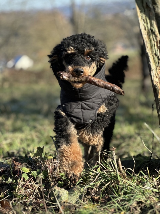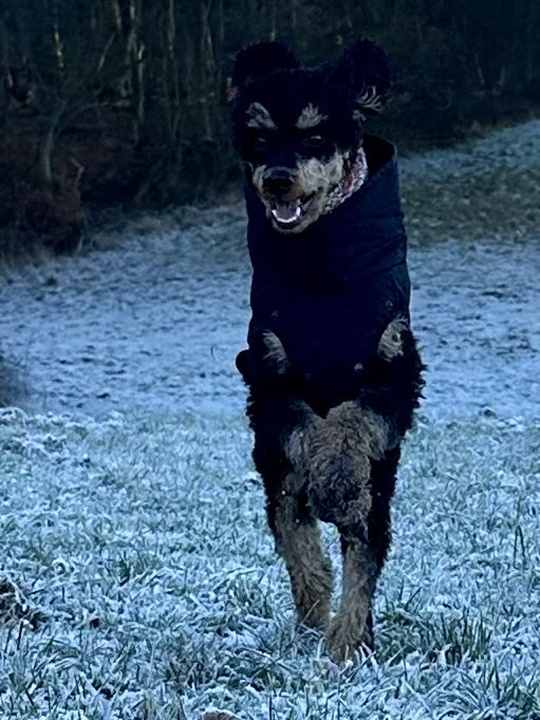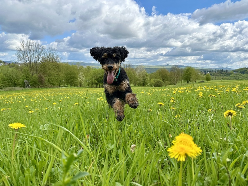 in der Welpenstunde ist Minna zu den heranwachsenden, aber höflicheren Junghunden gestoßen :-)