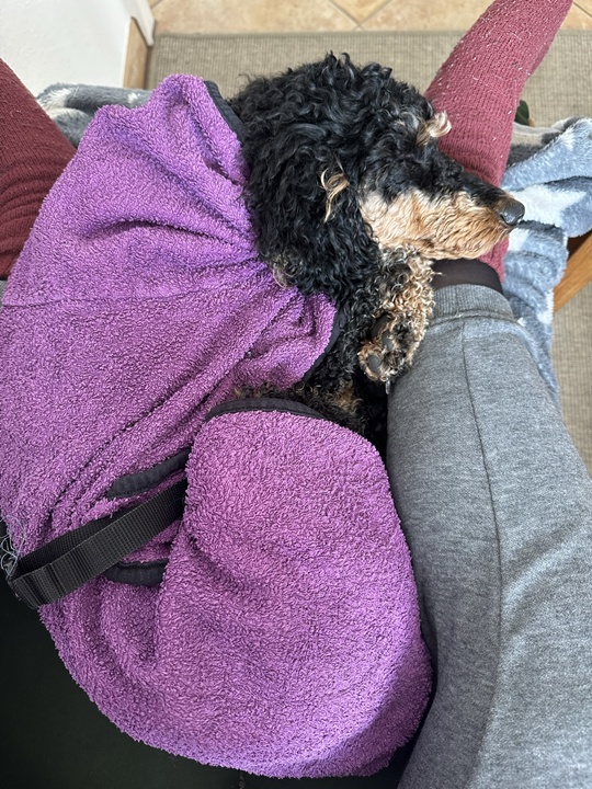 Danach sind wir noch 20 Kilometer mit dem Rad gefahren und jetzt liegt die hier neben mir auf dem Sofa und sagt dauernd „ui“ wenn sie sich bewegt….
