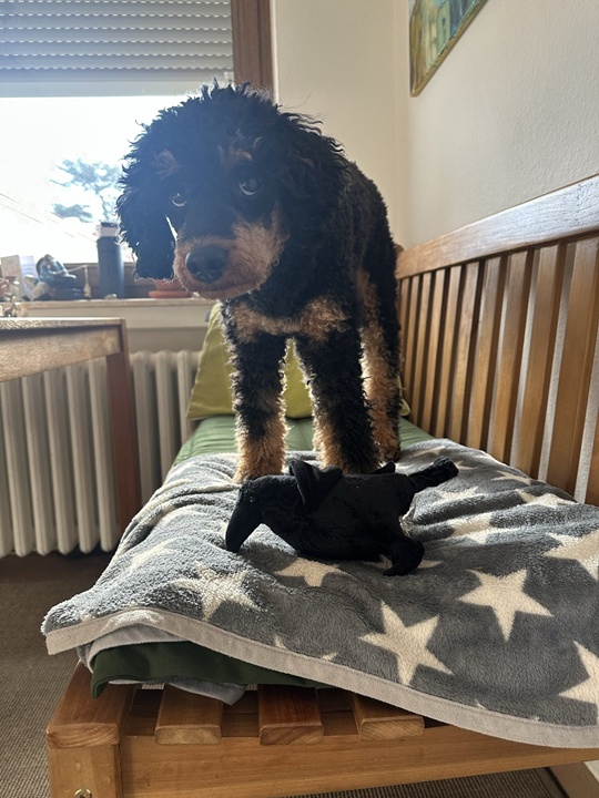 Meine liebste tante gabi 🩷 heute vor genau einem jahr wurde ich geworfen…und bin dabei zum glück genau in deine hände gefallen…du hast mich dann gleich weitergereicht und zur Frau gesagt: hier, halt das doch mal kurz….und die frau hat sternchen gesehen und plötzlich herzchen in den augen gehabt….uns ist eine pudelin geboren, hat sie zum mann gesagt und der hat geseufzt, weil er dich eigentlich grade vielflieger werden wollte….also so oder so ähnlich hat es sich zugetragen, stimmts?? 🩷🥰😘⭐️🌈