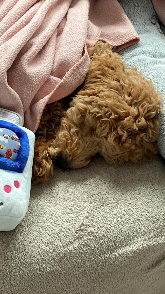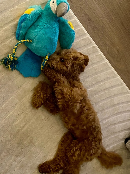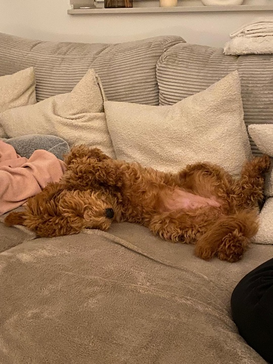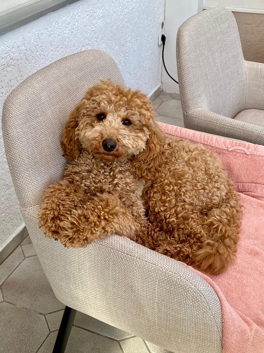 Fini wächst fleißig weiter, mittlerweile haben wir vom Gewicht die 6,5 kg geknackt. Aktuell zahnt sie und verbringt den Tag damit zu schlafen oder auf irgendwas aus Gummi/etwas Gefrorenem rumzukauen 👍🏼 auf der Arbeit ist sie ein absoluter Profi-Pudel! Sie verschläft Konferenzen oder Therapiegespräche auf ihrem Platz und freut sich danach, wenn sie durch unseren begrünten Freistundenhof flitzen kann 😄 wir können uns gar nicht mehr vorstellen, wie es mal ohne den kleinen Süßkeks war ☺ in der Hundeschule durfte sie letzte Woche auch die Leinenführigkeit demonstrieren - wir drei üben fleißig und das zahlt sich aus ☺ mal sehen, was die Pubertät so bringen wird 😂 in knapp 3 Wochen hat sie ihren nächsten Friseurtermin, den wir schon sehnlichst erwarten - das kleine Zotteltierchen 😂 man sieht auch, dass sie jetzt nochmal heller wird ☺