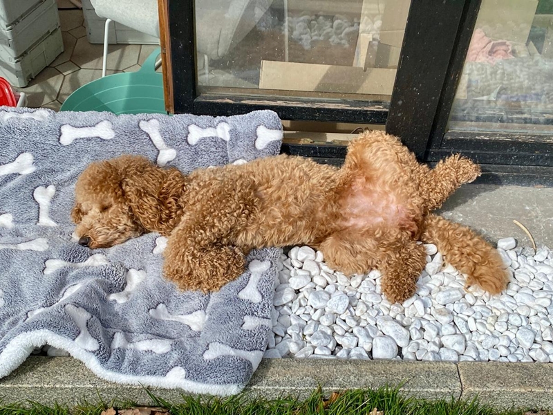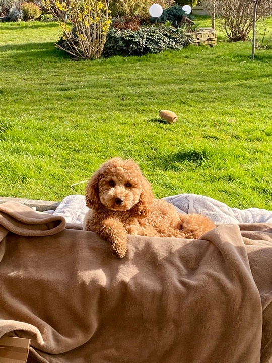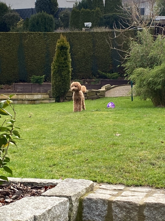 Unser Garten hat Südseite und da konnte Fini sich jetzt am Wochenende schon schön im Garten bzw. Wintergarten sonnen 🐩☀️ schräg gegenüber vom Haus ist ein Wald, schon sehr praktisch! 🙂 Gestern hat Fini auch mit einer Doodle-Dame aus der Nachbarschaft gespielt, haben sich gut verstanden die beiden 🙂 Gerade ist die Maus das zweite Mal läufig und sobald wir das hinter uns haben, können ihre männlichen Hundefreunde auch zu Besuch kommen 😅 das Alleinbleiben klappt auch hier im Haus schon super - die Maus schläft einfach, kommt nicht mal angelaufen, wenn wir wieder reinkommen 😂 ganz liebe Grüße an euch!