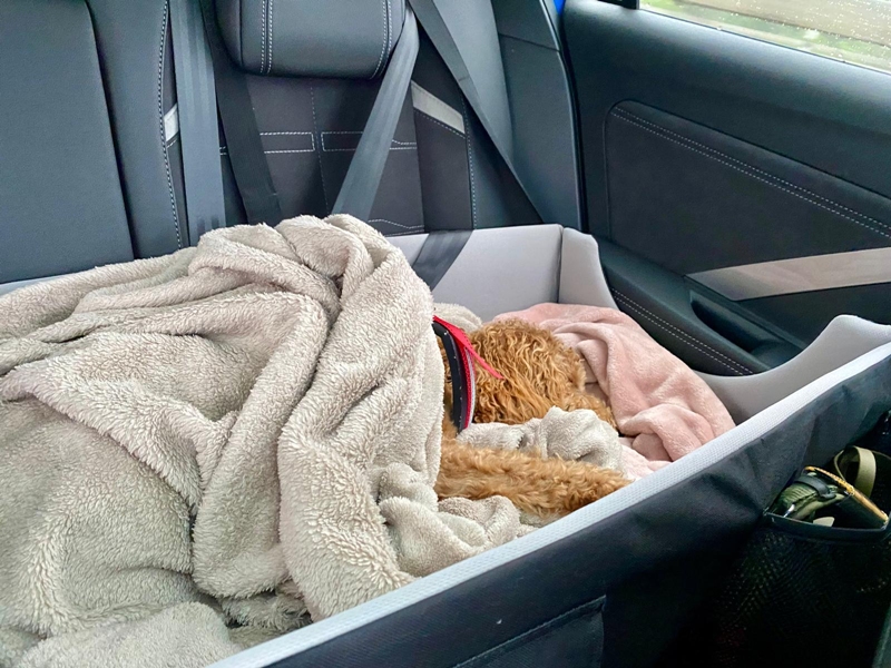 Und die Autofahrt hat sie komplett verschlafen - in den Pausen wurde schön zusammen gespielt und getobt und dann konnte das Püdel auch gut die nächste Etappe verschlafen 🥰 du siehst, wird sind ganz stolz auf unsere Süßmaus