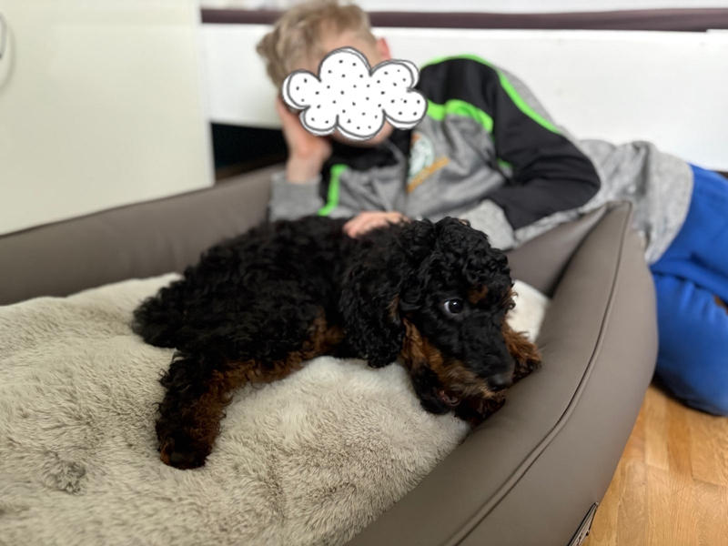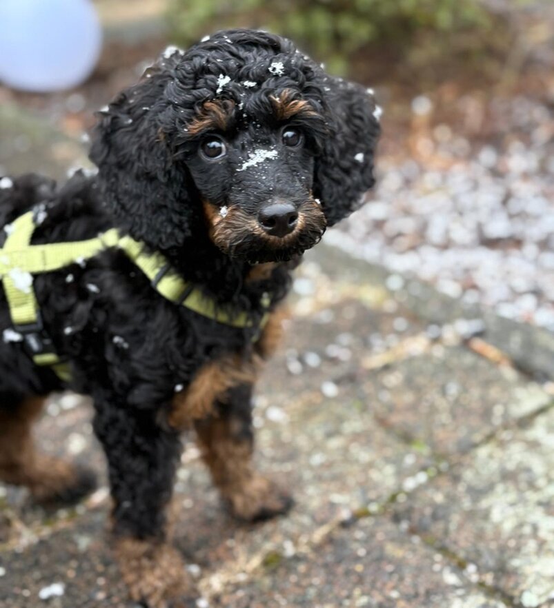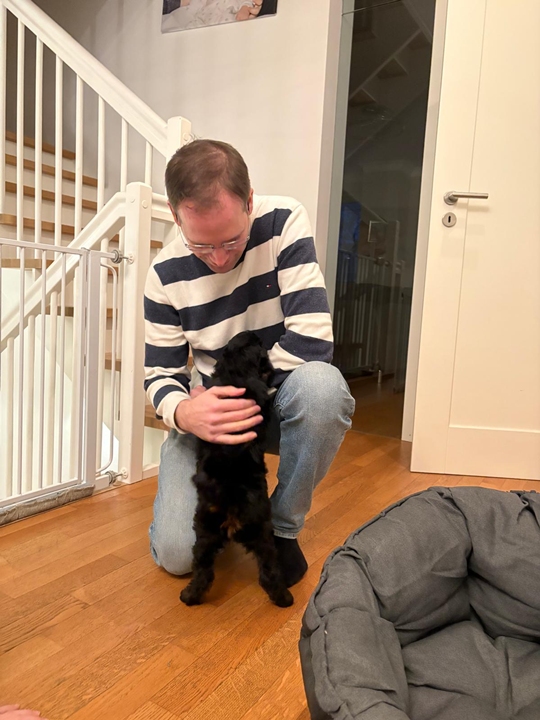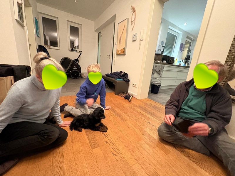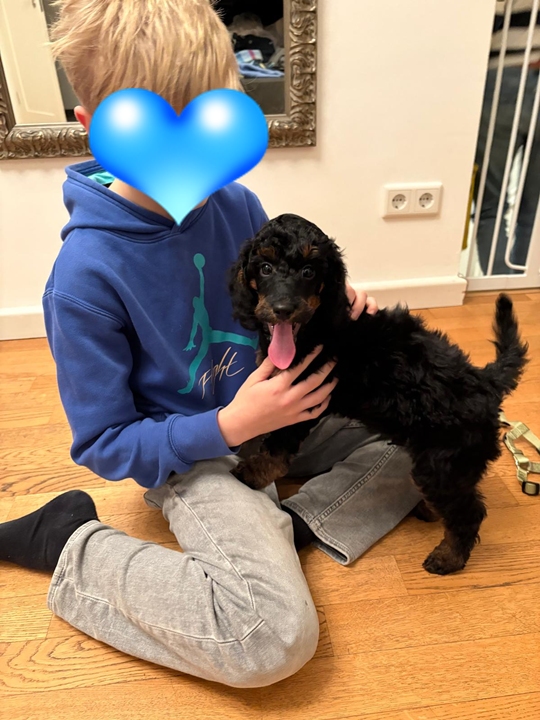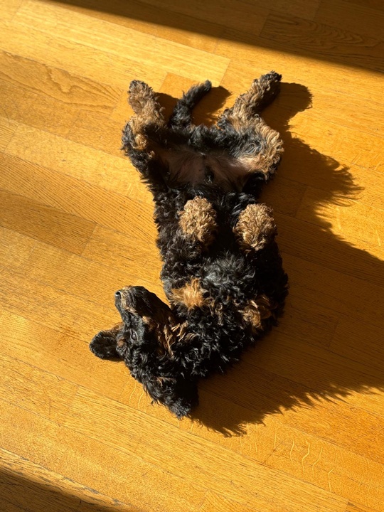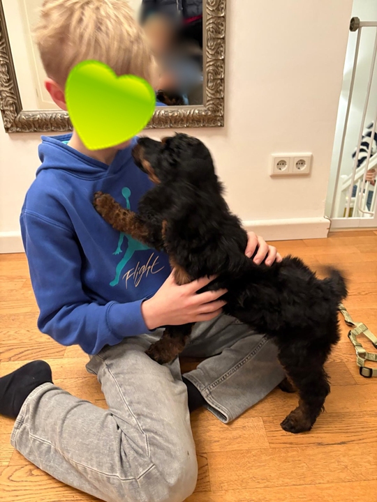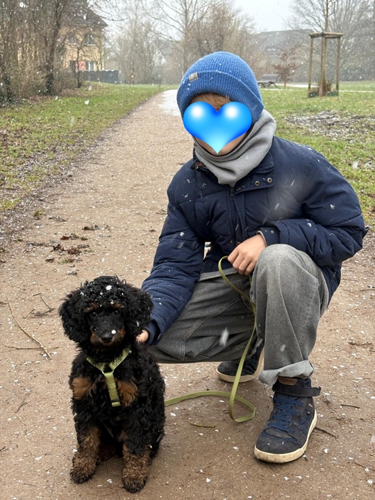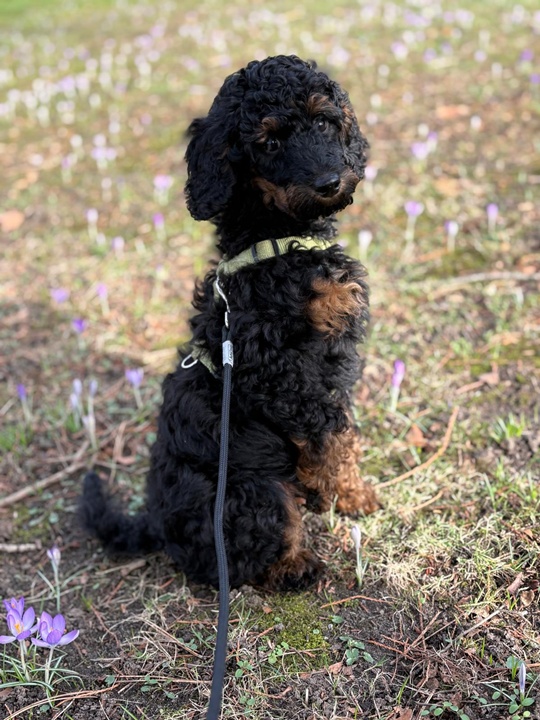 Er wächst und gedeiht. Per heute 4400g. Er wird jeden Tag mutiger und taut immer schneller auch bei Fremden auf. Gestern haben wir im Park einen 3 Monate alten Puddlwelpen getroffen, mit dem er sehr gerne gespielt hat. Eine Freundin mit ihrer alten Hündin war neulich hier, sie hat alles stoisch über sich ergehen lassen und dann kam zum erste Mal auch die Hausleine zum Einsatz und alle Vierbeiner konnten zur Ruhe kommen.😇