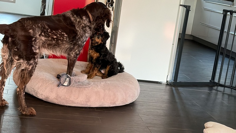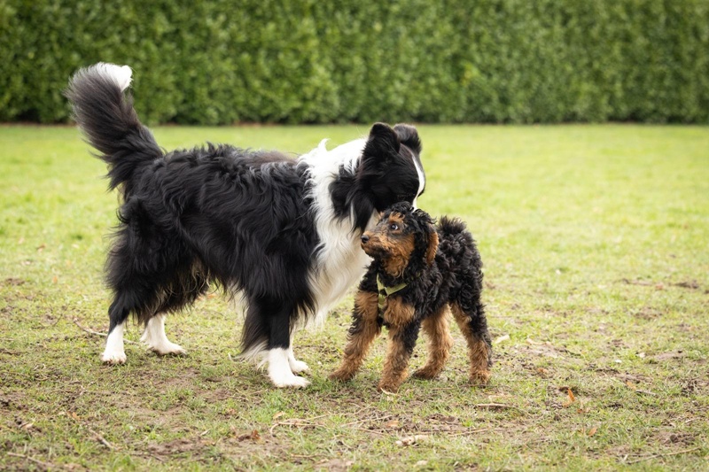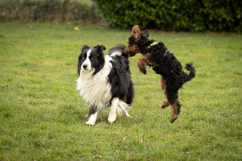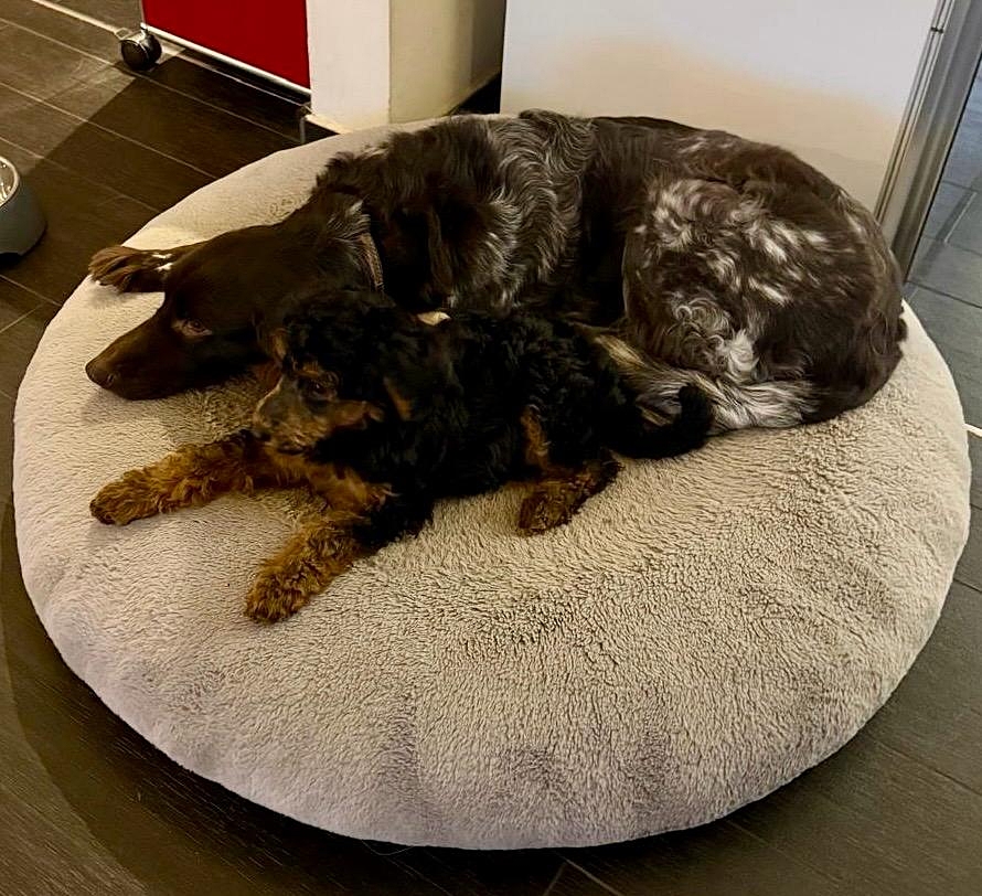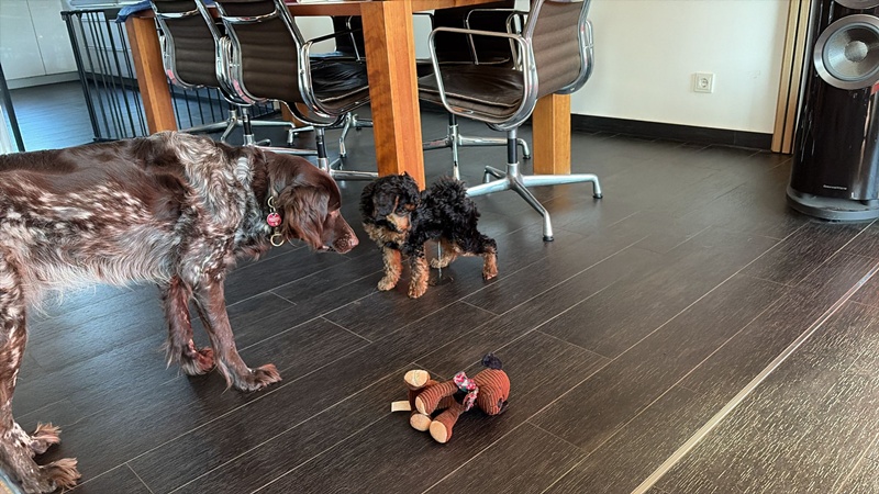 Gestern waren wir zusammen bei unserer Welpengruppe… wir werden wohl mit beiden gemeinsam üben müssen, dass nicht immer sofort getobt wird.