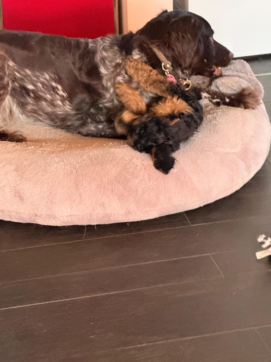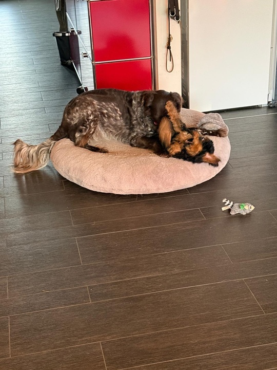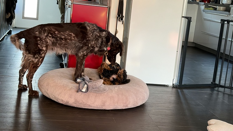 Sie macht sehr klare Ansagen! Beim ersten Mal dachte ich, sie frisst ihn… es ist etwas moderater geworden, anschließend schaut sie mich fragend an… sie macht es gut und Piky auch…. Er versteht sehr gut! Da hat Tildi wirklich gut vorgearbeitet.