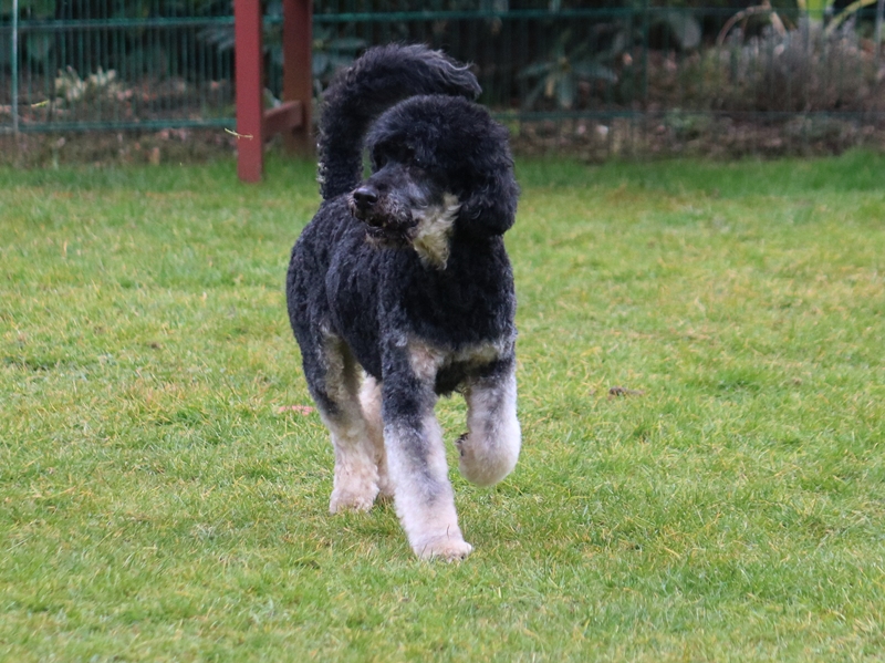 Nyma zählt zu den ersten, in unserer Gemeinschaft, geborenen Mittelpudel. Das heißt sie gehört zum ersten bewusst geplanten Wurf aus Groß- und Kleinpudel.