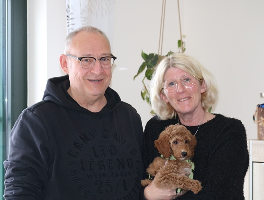 Kurt, der Große in unserem Wurf.... ein sehr charmanter Kerl. Kurt lebt, nur vom Rhein getrennt, ein paar Autominuten von uns entfernt. Der Wunsch nach einem Lockenkopf bestand schon länger und ich freue mich sehr, dass Kurt jetzt das Leben seiner Familie durcheinander wirbeln darf.