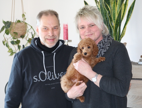 River hat das Glück, neben seinen Menschen auch eine tolle Pudeldame an seiner Seite zu haben. Sie wird ihm den Schritt in die große weite Welt leichter machen. Er lebt im westlichen Ruhrgebiet und hat das große Los gezogen bald mit seiner Familie noch mehr Platz zum Toben zu haben.