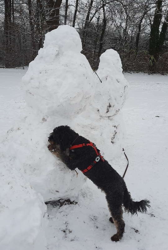 Djara hatte Spaß im Schnee und baut einen Schneemann