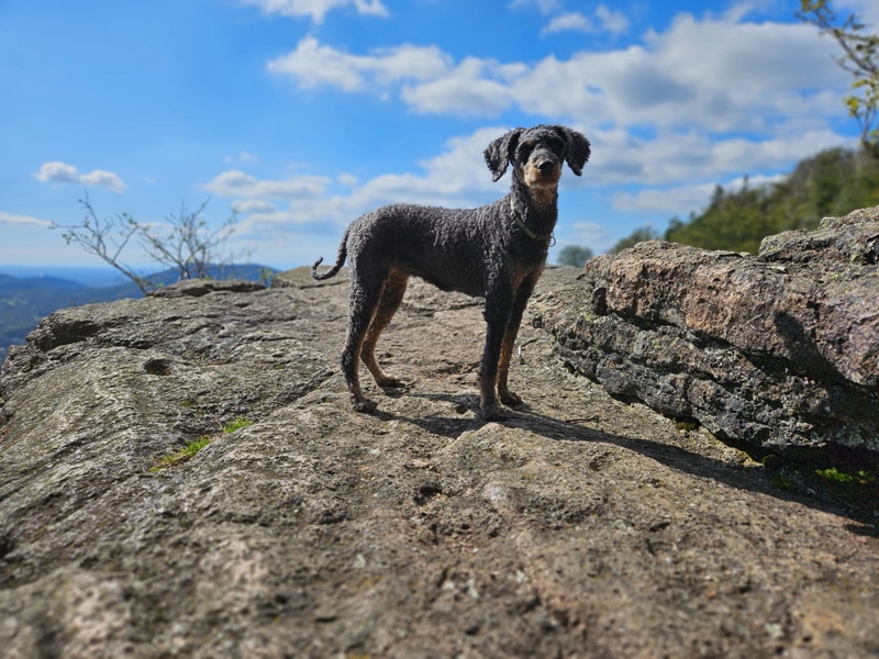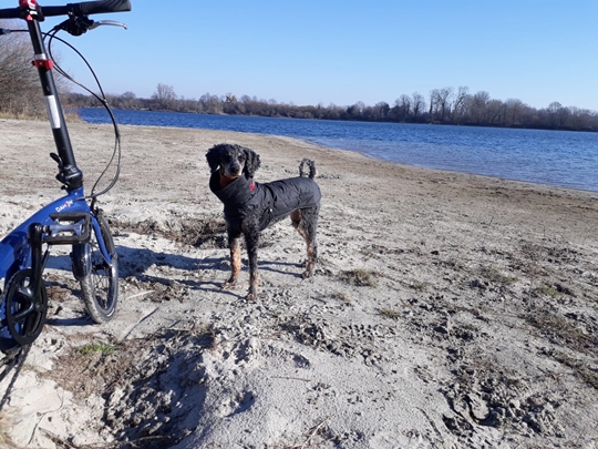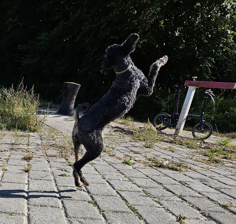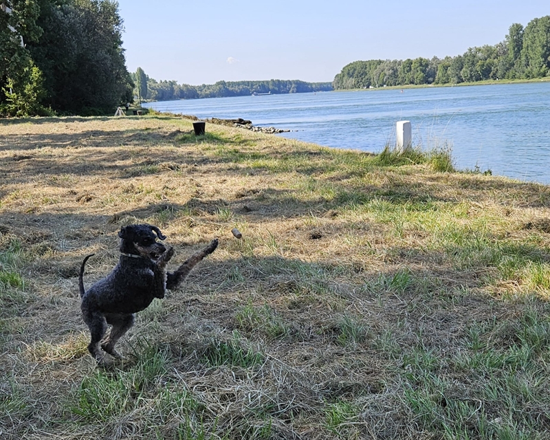 Nun lebe ich schon ein Jahr bei meinem neuen Menschen Peter. Uns beiden geht es super und wir haben eine tolle Zeit miteinander. Er weiß wie gerne ich draußen rumhüpfe und so fährt er mit mir immer an schöne Stellen zum Spazierengehen. Ich quirle alle schwindlig, das macht einen Heidenspaß. Hundefreunde hab´ ich so einige, Große und Kleine.