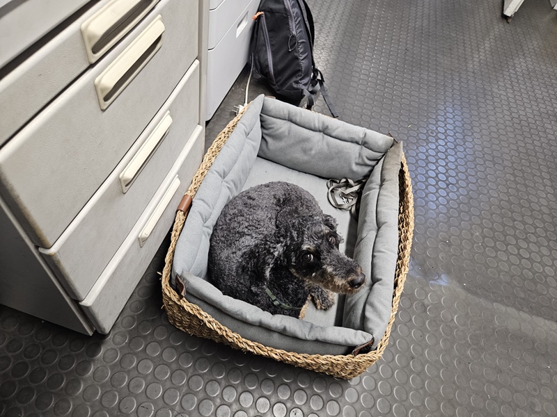 Aber Emmis macht sich auch gut als Begleitung bei der Arbeit.