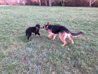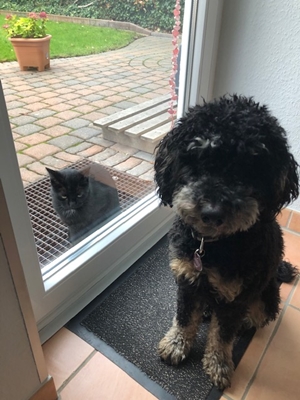 Er genießt die Zeit mit seinem Rudel drinnen und draußen 😉! Auf der Insel haben wir viele tolle Pudel (Großpudel) getroffen!