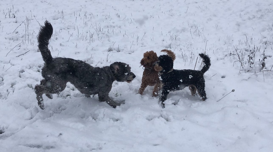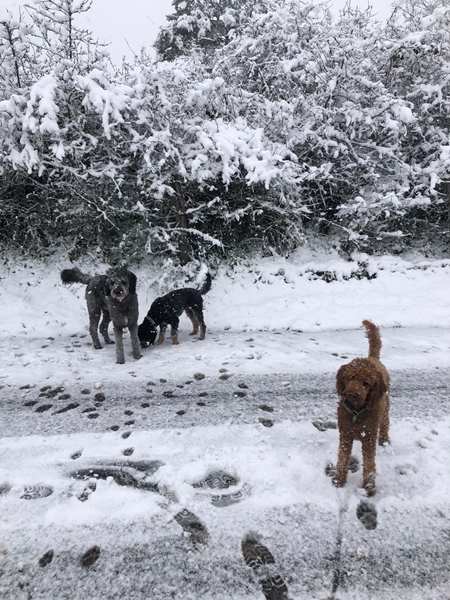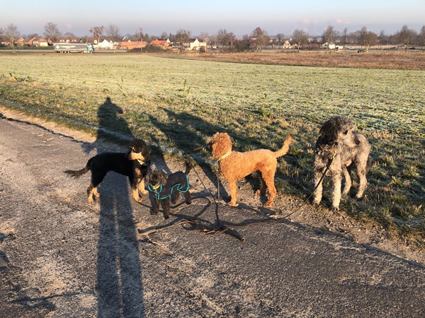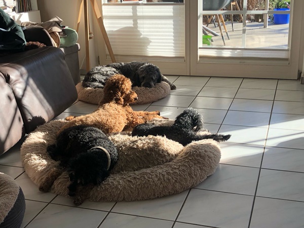 Hier ist alles wunderbar, außer dass es sehr kalt wurde, als ich die Rasselbande gerade geschoren hatte… da müssen gerade die Mäntel herhalten…