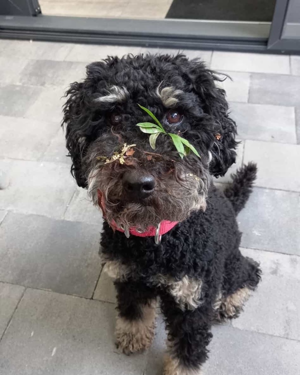 So sieht der Niederrheinische Matschpudel nach intensiver Nasenarbeit aus.