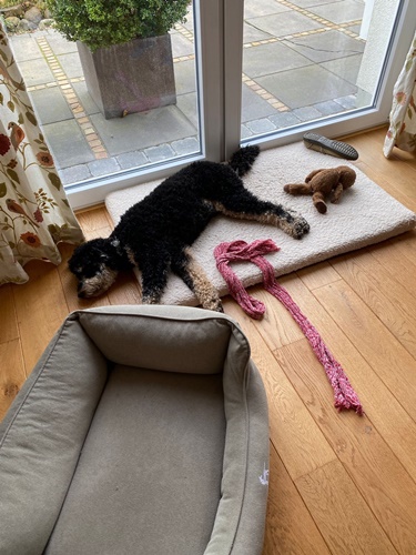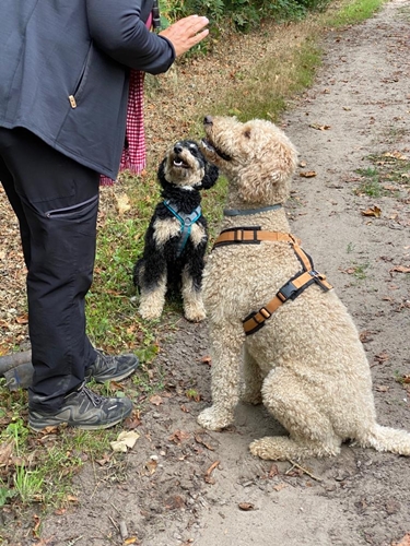 Die Hundetrainerin war erfindungsreich und macht online training. Sie schickt uns immer kleine Videos mit Übungsaufgaben. Das ist hilfreich für uns, ersetzt aber nicht den persönlichen Kontakt.
