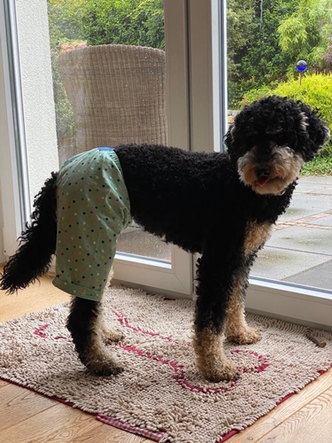 Wie Du weißt, waren wir im August eine Weile in großer Sorge. Gott sei Dank ist er wieder völlig gesund. (Lenny hat sich ja beim Toben mit einem Hundekumpel so unglücklich verletzt, dass es operiert werden musste.)
