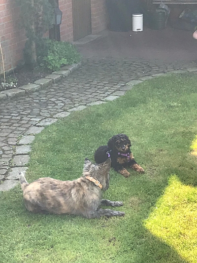 Lizzy ist noch immer eine wilde Hummel und wir haben sehr viel Spaß und Freude mit ihr. Sie freut sich über jeden Menschen und jeden Hund und möchte am liebsten mit allen kuscheln und spielen!!![]()
