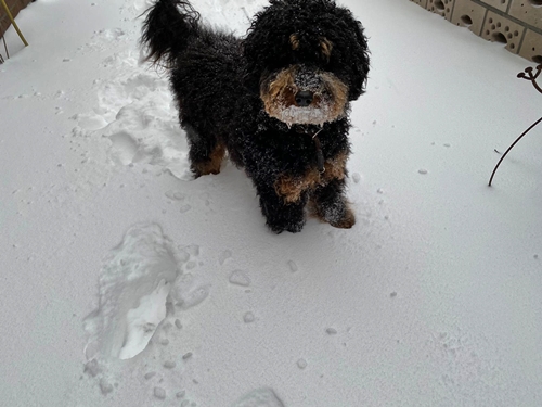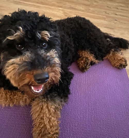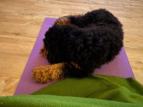 Lizzy mach im Schnee und auf der Yogamatte eine gute Figur.