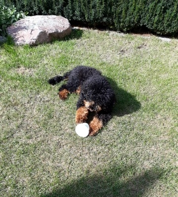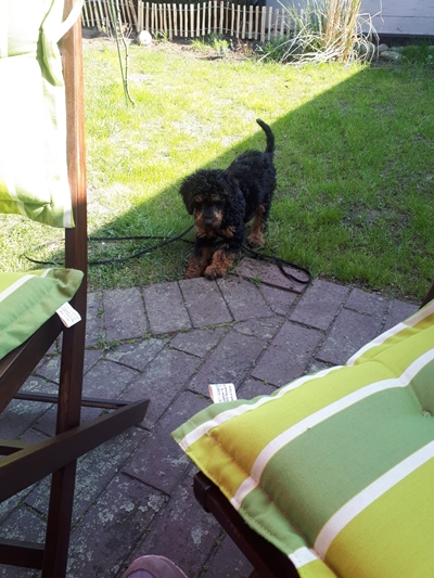 Sie gräbt gern den Garten um und sorgt dafür, das der Rasen eine völlig neue Optik hat😉Lizzy mit fünf Monaten