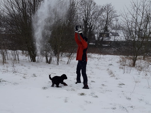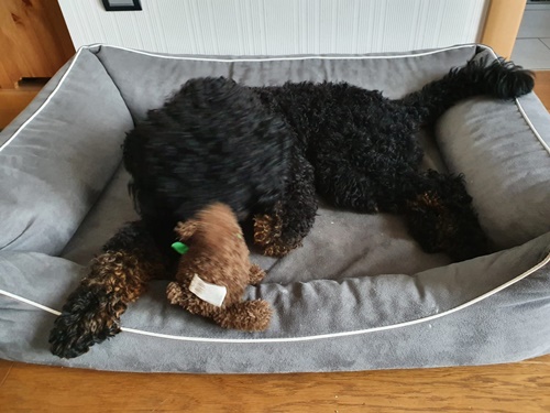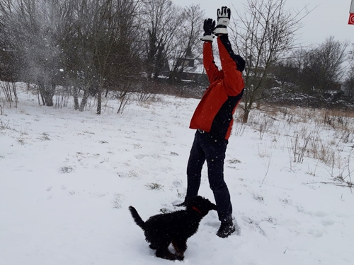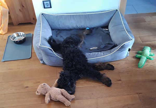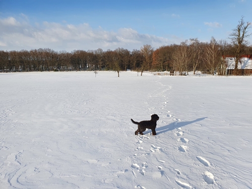 Matti ist immer noch ein absoluter Sonnenschein, er macht uns so viel Freude! Er ist immer noch zurückhaltend, und wenn viele Hunde aufeinandertreffen, ist das nicht seins. Aber er hat ein paar Hunde-Buddies, mit denen er liebend gerne Fangen spielt (dabei gewinnt er immer!) So langsam fängt er auch an, sich für die Mädels zu interessieren, dabei hat er besonders eine Goldendoodledame im Blick. Es bleibt also spannend!