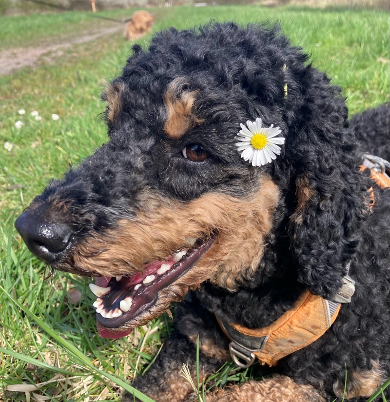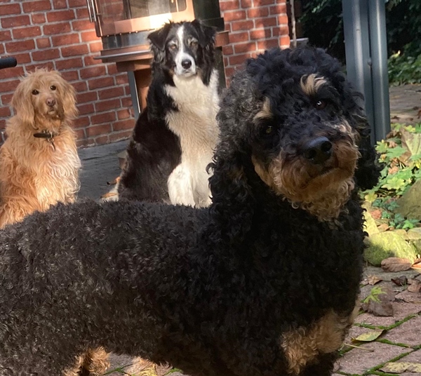 Hier läuft es wirklich super. Momo zeigt langsam Interesse, es wird schon mal geschnuppert. Milka ist immer fröhlich und weiß dank Leni und Nyma genau, wie man sich erwachsenen Hunden gegenüber benimmt. Alle Geschäfte werden brav im Garten verrichtet und das Futter schmeckt auch 😋