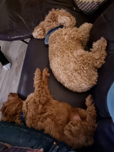 Ob Herrchens Beine eingeschlafen sind? Egal, hauptsache das Hundekind schläft gut :-)