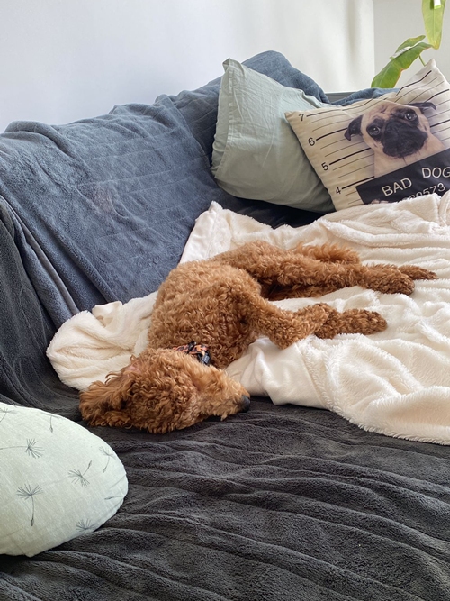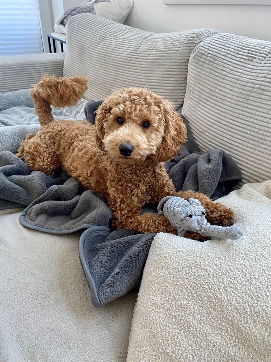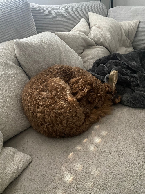 Fini wächst fleißig weiter, mittlerweile haben wir vom Gewicht die 6,5 kg geknackt. Aktuell zahnt sie und verbringt den Tag damit zu schlafen oder auf irgendwas aus Gummi/etwas Gefrorenem rumzukauen 👍🏼 auf der Arbeit ist sie ein absoluter Profi-Pudel! Sie verschläft Konferenzen oder Therapiegespräche auf ihrem Platz und freut sich danach, wenn sie durch unseren begrünten Freistundenhof flitzen kann 😄 wir können uns gar nicht mehr vorstellen, wie es mal ohne den kleinen Süßkeks war ☺ in der Hundeschule durfte sie letzte Woche auch die Leinenführigkeit demonstrieren - wir drei üben fleißig und das zahlt sich aus ☺ mal sehen, was die Pubertät so bringen wird 😂 in knapp 3 Wochen hat sie ihren nächsten Friseurtermin, den wir schon sehnlichst erwarten - das kleine Zotteltierchen 😂 man sieht auch, dass sie jetzt nochmal heller wird ☺