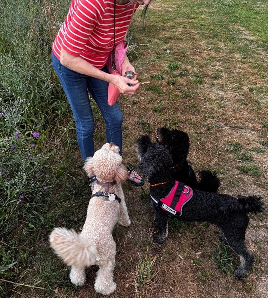 Whisky‘s Frauchen hat immer kleine Leckereien mit auf der Spielwiese …