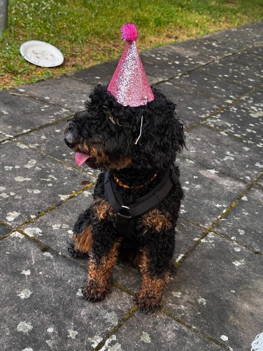 es gab lecker selbstgemachte Hackfleisch 🎂 Luftballons viiiiele Leckerlies & Hütchen für alle 🤭🥰