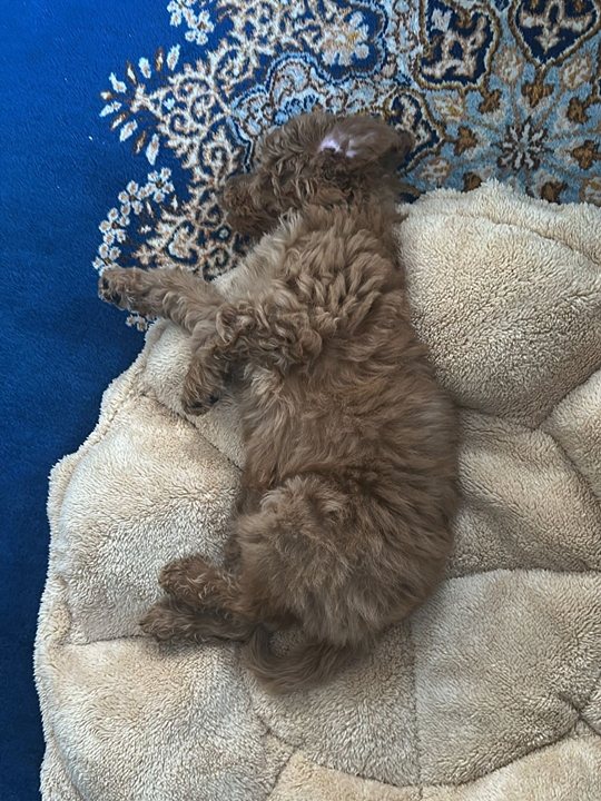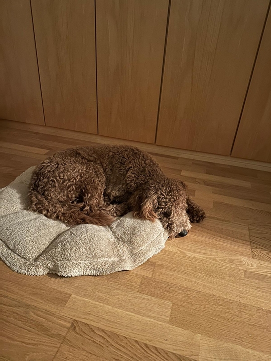 Und so liegt der Kleine bei Andi im Arbeitszimmer 🥰