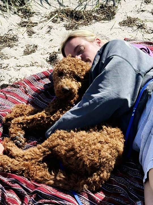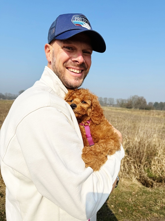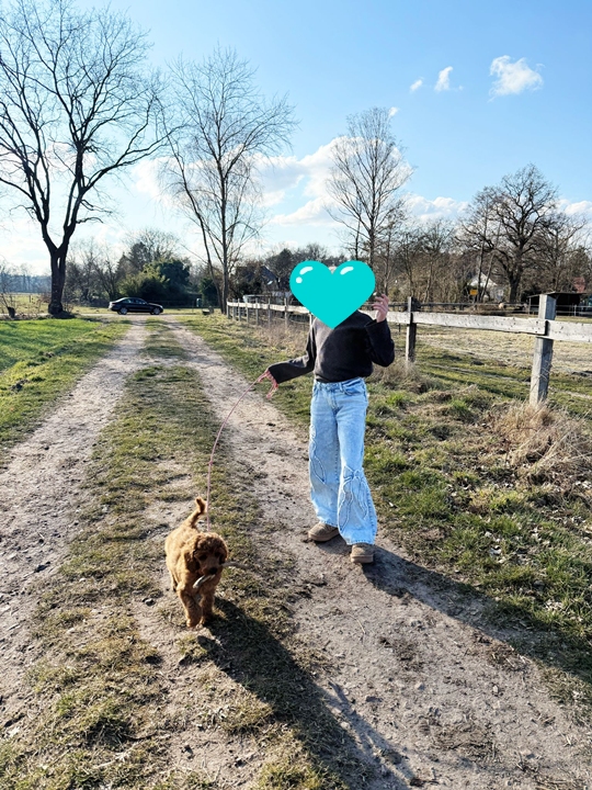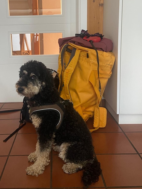 Tebby ist super angekommen, sie ist so eine Herzensseele. Wir lieben sie schon total! Sie hat nur zwischendurch ein paarmal gewimmert und auch heute Nacht hat sie außer ein bisschen hecheln und ein bisschen Baby weinen alles super gemacht. Wir sind gestern Abend gegen elf ins Bett gegangen, beziehungsweise Flo, ich war so müde… Ha, ha… Und heute Morgen um 5:45 Uhr wieder aufgestanden. Dann ist sie direkt raus und hat zwei dicke Häufchen gemacht. Ihr geht es super, uns geht es super! Ich bin der glücklichste Mensch der Welt! Danke für deine tolle Leistung so ein vertrauenswürdiges Wesen in die Welt zu schicken ❤🫶🏼