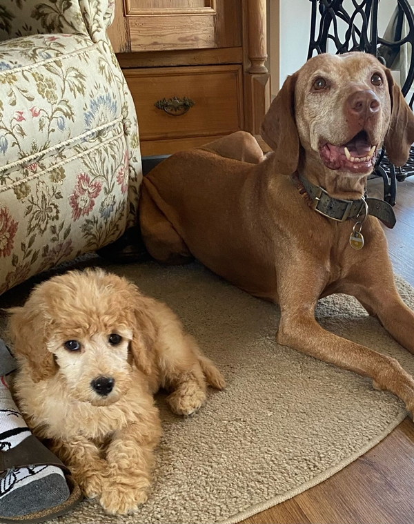 Hallo Gabi🙂, kurzes Update: Die Fahrt war gut - leider musste Jette etwas brechen. Aber sie war sehr tapfer👍 Die Ankunft hier war einfach toll. Sie hat sofort Pipi gemacht u das Treffen mit Mira souverän gemeistert 🥰siehe Bild anbei( wirklich nicht gestellt)