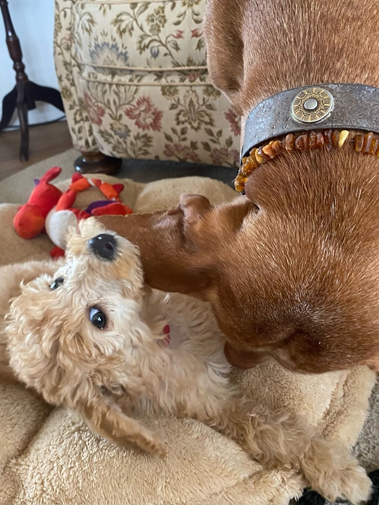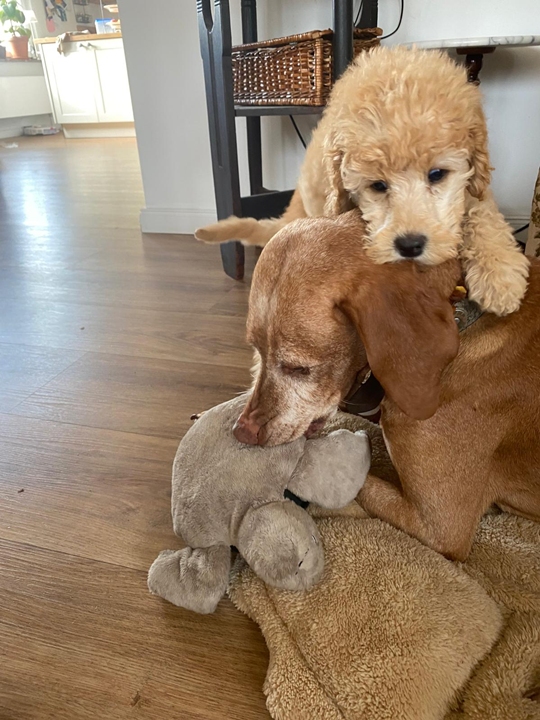 Hallo Gabi🙂, Jette ist so eine Freude für uns🥰besonders auch für Mira, sie blüht regelrecht auf. Die beiden spielen richtig miteinander 😃Wobei Jette Mira animiert 👍Das hab ich nicht zu hoffen gewagt🥰