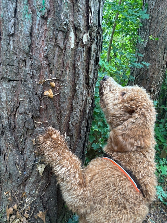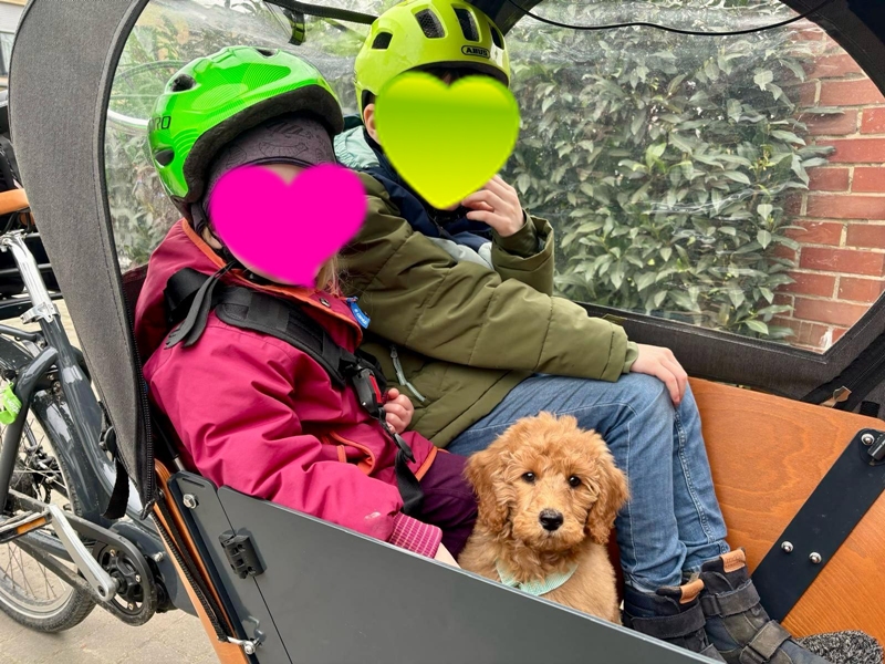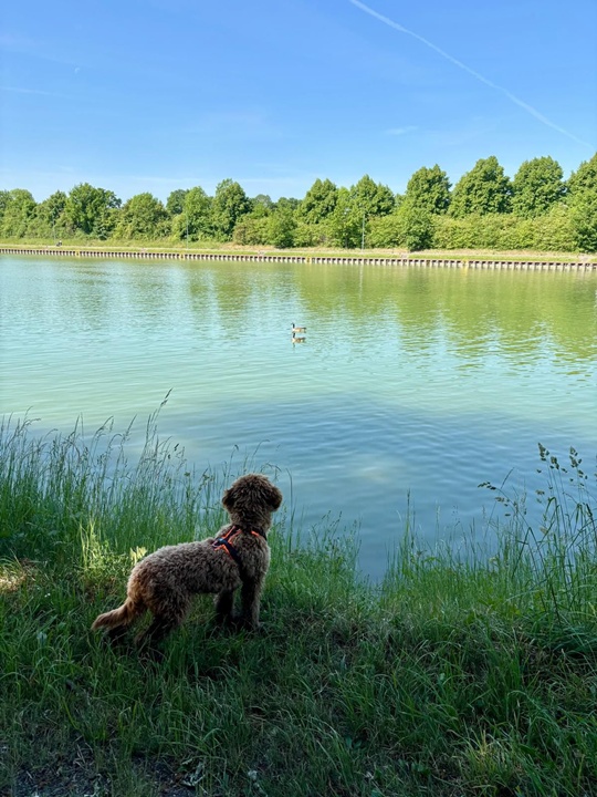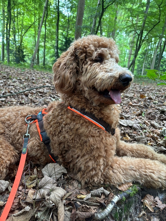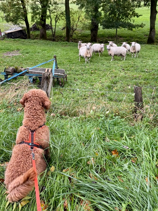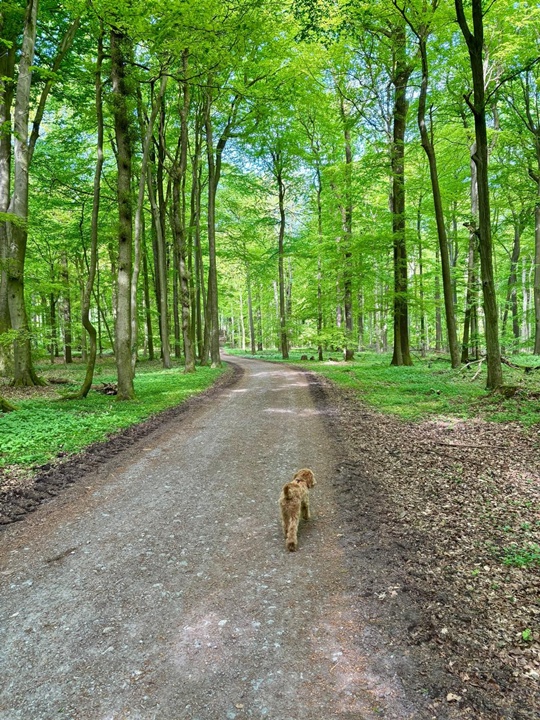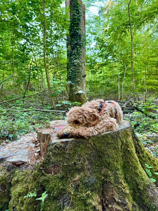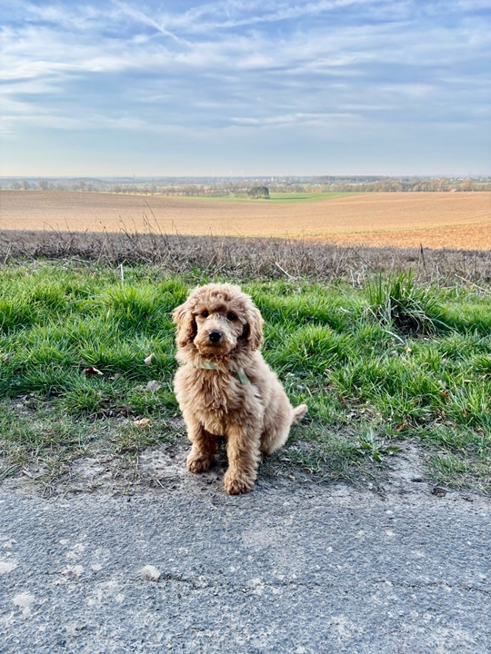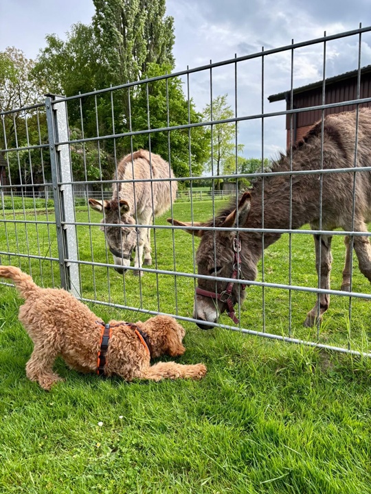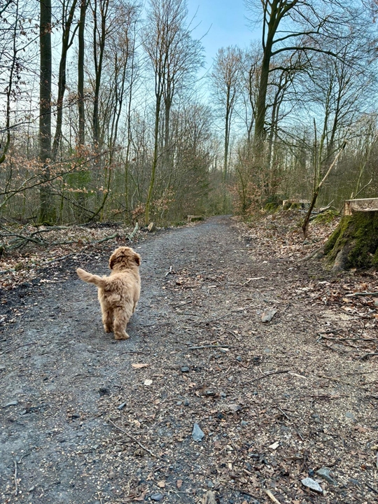 Heute Morgen ging es für eine erste kleine Wanderung in die Baumberge und er hat vorhin den ersten Nachbarshund kennengelernt.