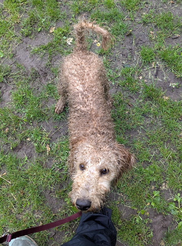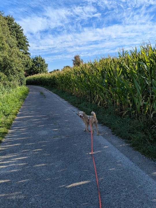 Die Pferde hinter unserem Garten findet Lotta nach wie vor gruselig und sie werden auch immer wieder angebellt, aber es ist schon weniger geworden. Aktuell sind die Walnüsse, die regelmäßig vom Baum fallen, für sie noch sehr spannend. Unterwegs sind fliegende Blätter oder Eicheln immer das Jagdziel. Wir haben gestern Abend das erste Mal einen Social Walk bei einer neuen Hundeschule mitgemacht und hoffen, dass Lotta dort lernt, weniger Erwartungen zu haben, wenn sie andere Menschen, neue Umgebungen oder vor allem natürlich auch Hunde sieht. Wir werden dort auch Anfang November noch einen Grundkurs zum Thema Leinenführung und Impulskontrolle machen.