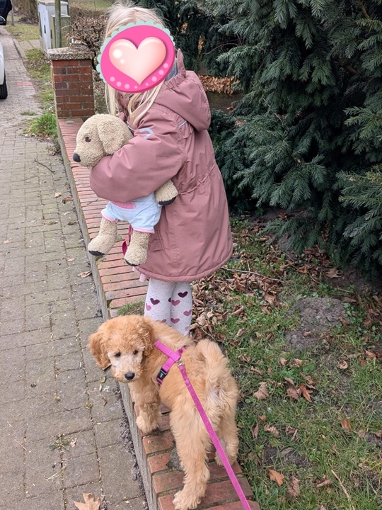 Ansonsten ist Lotta jeden Mittag der Star beim Abholen im Kindergarten. Das macht sie richtig prima mit (wenn nur die Autofahrt nicht wäre) und das Laufen an der Leine wird auch von Tag zu Tag besser.