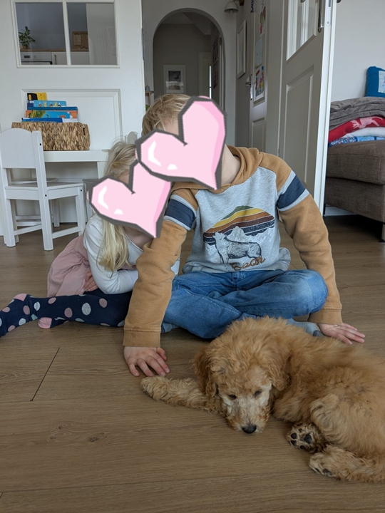 Letzte Woche hat sie zum ersten Mal richtig Quatsch gemacht, während sie eine Stunde alleine war: Die Fußleiste war dran und wurde von Lotta verschönert. Ansonsten klappt es gut, wenn Lotta hier und da mal alleine ist. Über Babyphone schauen wir immer mal rein und sehen, dass sie ihre Ruhe auch genießt (wenn die Kinder mal nicht da sind, insbesondere 😂). Ansonsten liebt sie die Kinder mindestens genauso sehr wie andersherum und kann es morgens kaum erwarten, sie "wach zu küssen" 🥰