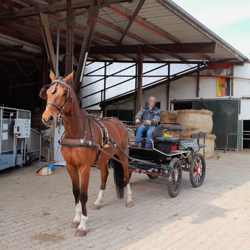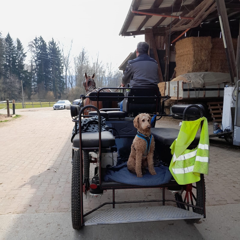 Jetzt wohnt er schon 1 Jahr bei uns und Nacht uns sehe viel Freude (obwohl er heute Hühner gejagt hat🙈). Wir gehen aber noch fleißig in die Hundeschule, ich hoffe wir kriegen das noch in Griff. Heute war er dabei beim Kutsche fahren, aber das ist ihm noch etwas unheimlich.