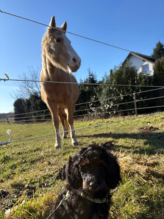 Er wächst und gedeiht. Per heute 4400g. Er wird jeden Tag mutiger und taut immer schneller auch bei Fremden auf. Gestern haben wir im Park einen 3 Monate alten Puddlwelpen getroffen, mit dem er sehr gerne gespielt hat. Eine Freundin mit ihrer alten Hündin war neulich hier, sie hat alles stoisch über sich ergehen lassen und dann kam zum erste Mal auch die Hausleine zum Einsatz und alle Vierbeiner konnten zur Ruhe kommen.😇