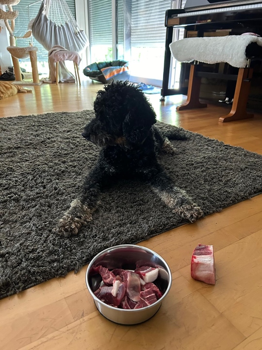 Der fängt an zu fressen - also Balou jetzt auch. Das ist immer das gleiche Schauspiel. Dem alten Herrn geht es gut und er lässt sich heute verwöhnen.