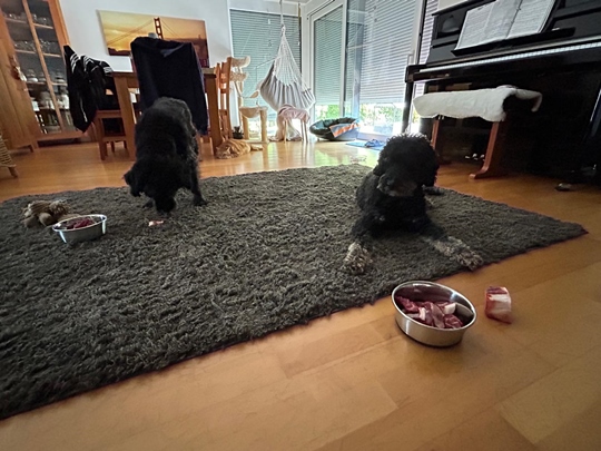 Vielen Dank! In typischer Pudelmanier erstmal das Geburtstagsessen bewachen und gucken, was der andere macht.