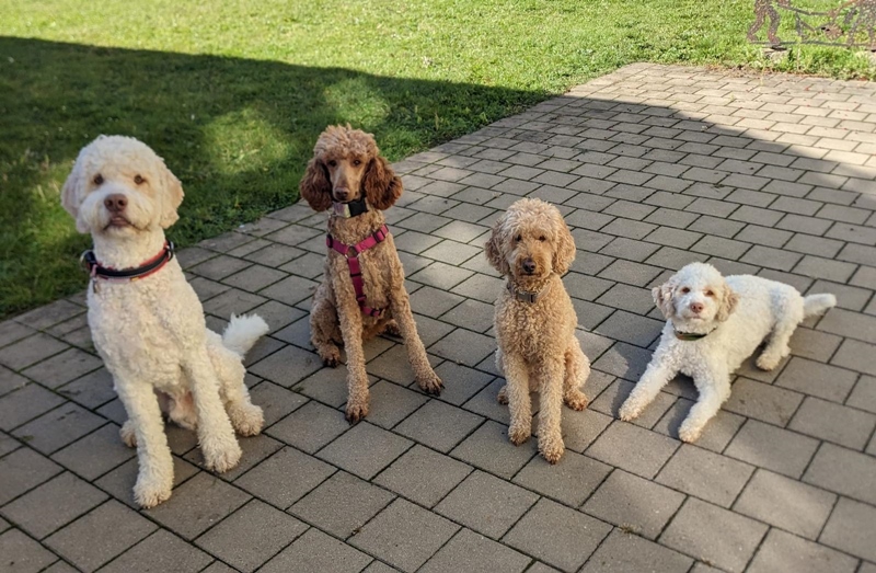 Ellie hat heute ihre Besuchshundeeignung erneuert, unter anderem mit 3 anderen Lockenwölfen unterschiedlicher Art 😎