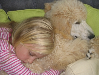 Seine Mutter war eine fawn Großpudelhündin, die ihm ihr besonderes Wesen mitgegeben hat. Sein Vater ein weißer Rüde.