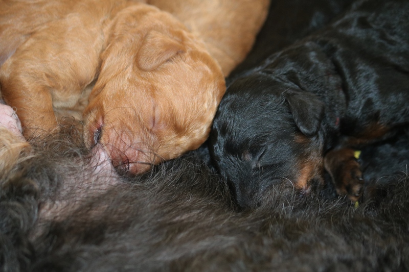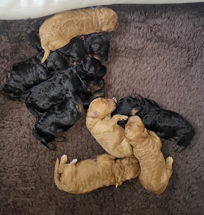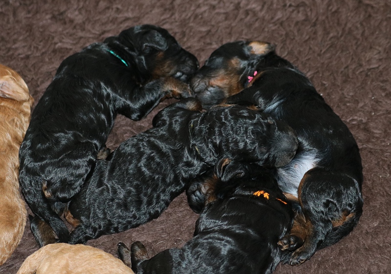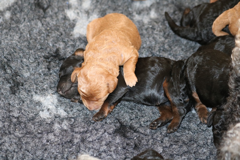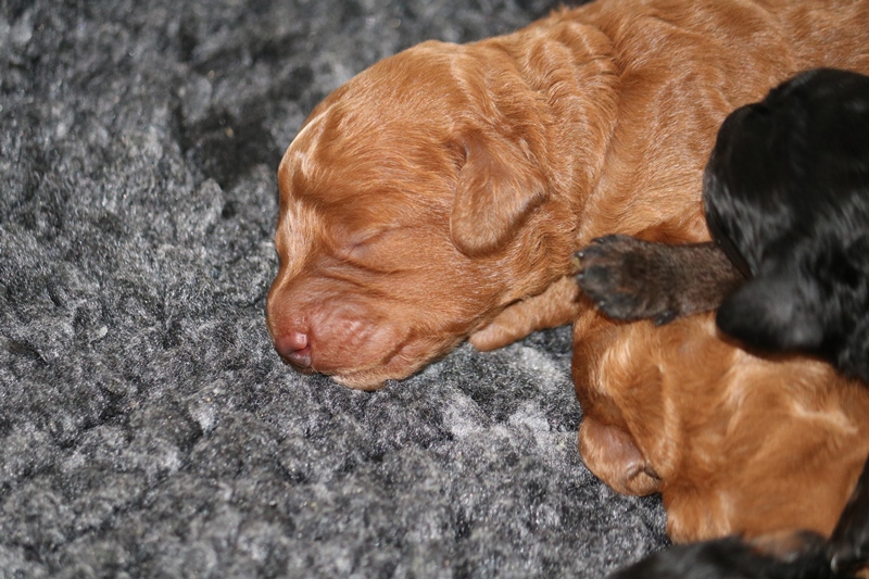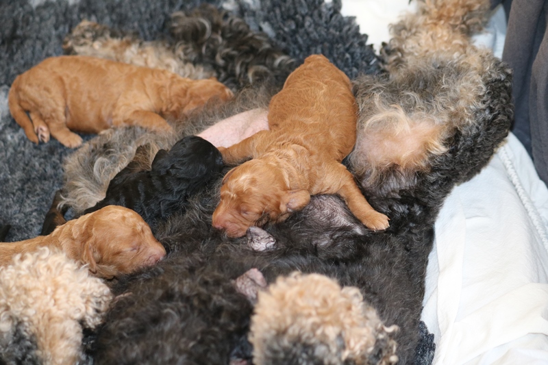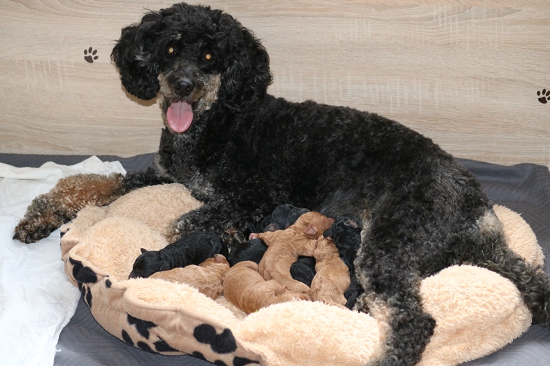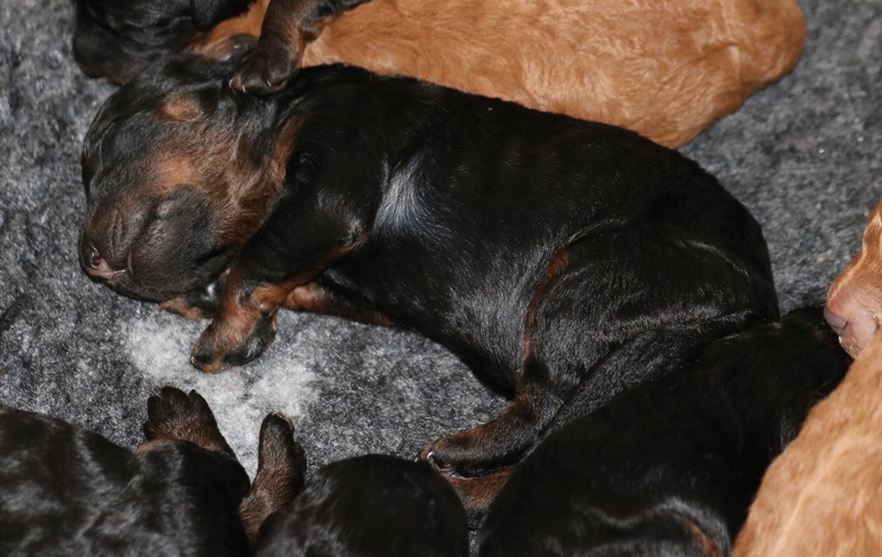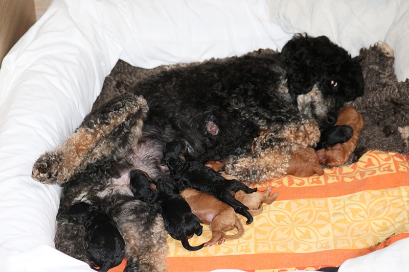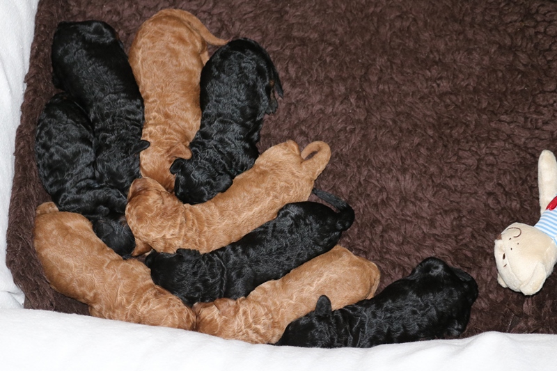 Damit ist die erste Lebenswochen der neun neuen Dreampudel vollendet und ich kann nur hoffen, dass es genau so weitergeht. Alle haben gut zugenommen, Mathilda ist sehr ausgeglichen und so sind alle Zwei- und Vierbeiner gelassen.... was will man also mehr?
